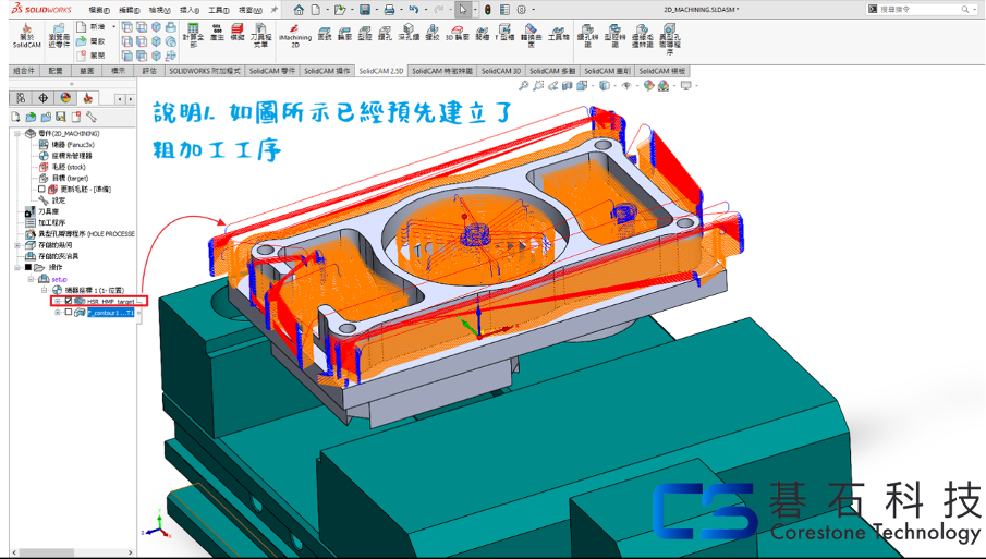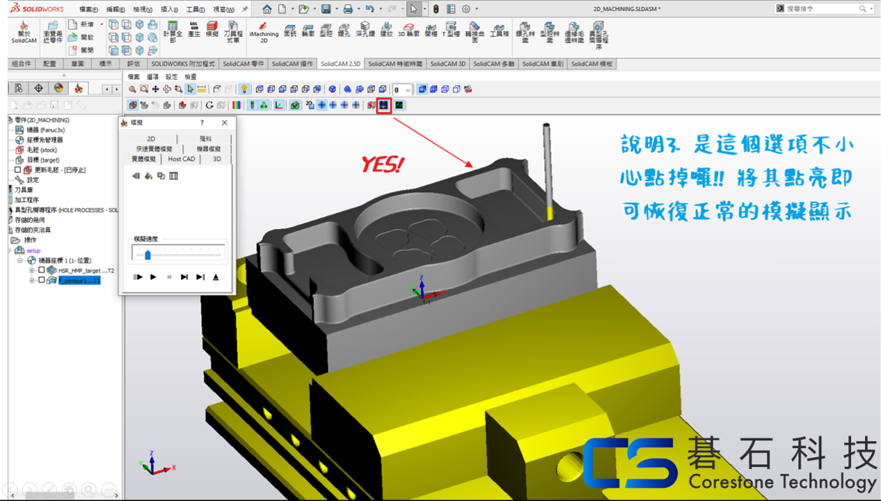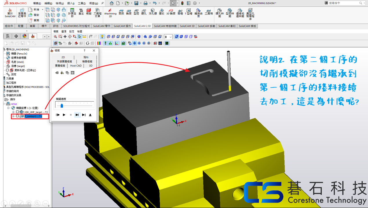 在SolidCAM實體模擬加工時,發現在後面的工法切削模擬時