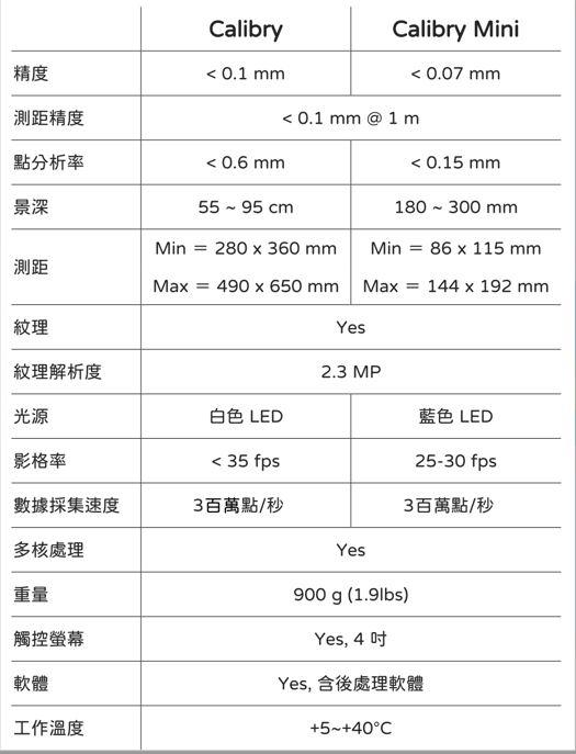 Calibry Mini :主要掃描長度為2cm~30cm的物件